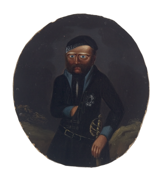 Ovales Miniaturgemälde mit Bildnis des Herzogs Friedrich Wilhelm von Braunschweig-Lüneburg-Oels, dem "Schwarzen Herzog" (reg. 1806-1807 und 1813-1815) mit schwarz-blauer Uniform mit rechter Hand im Rock. Der Dargestellte mit schwarzer Offiziersmütze mit blau gemustertem Rand, Orden und Degen. Dunkler, neutraler Hintergrund.