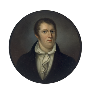 Runde Dose mit Bildnis des Braunschweiger Komponisten, Dirigenten und Geigenvirtuosen Louis (Ludwig) Spohr (1784-1859) mit weißer Bluse mit Jabot und dunklem Rock. Wolkiger Hintergrund.