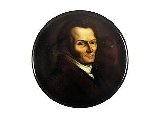 Runde Dose mit einem Bildnis des Hamburger Bürgers J. G. Rapsold (1770-1830). Anmerkung: Die Bezeichnung: "t/4" sowie "10g" dürfte sich auf den Preis für diese Dose beziehen: 4 Taler und 10 Groschen.