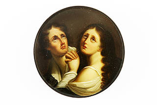 Runde Dose mit einem Doppelbildnis des Berühmten Theologen des 12. Jhs. Peter Abaelard Und seiner zwanzig Jahre jüngeren Geliebten Héloise, der Nichte des Kanonikus Fulbert von Notre Dame in Paris, in heroischer Pose. Malerei nach zwei Radierungen in Punktiermanier von Ignaz-Aurelius Feßler (1756-1839).