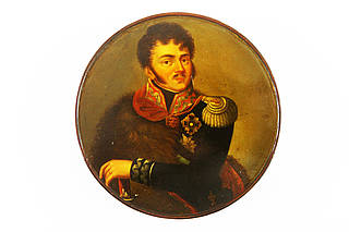 Runde Dose mit dem Bildnis des polnischen Generals und späterem französischen Marschalls Jozef Poniatówski (1764-1813) in Militäruniform mit verschiedenen Orden und üppigem Zobelpelz-Umhang.