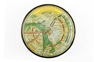 Runde Dose mit kolorierter Radierung. Karte der Völkerschlacht bei Leipzig im Jahr 1813.